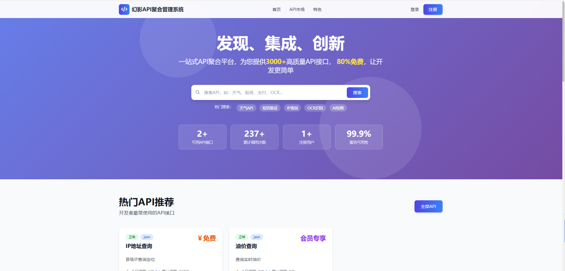 幻影API聚合管理系统是基于 PHP+Mysql 进行开发的,拥有多接口管理功能,支持不同的计费方式包括包月、按次、会员专享。用户可以全自动注册使用,系统...
