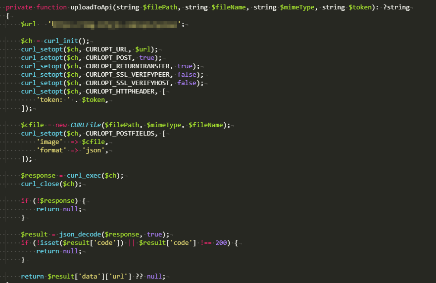 重写图片上传方法,使用 cURL 向兰空 API 发送图片。