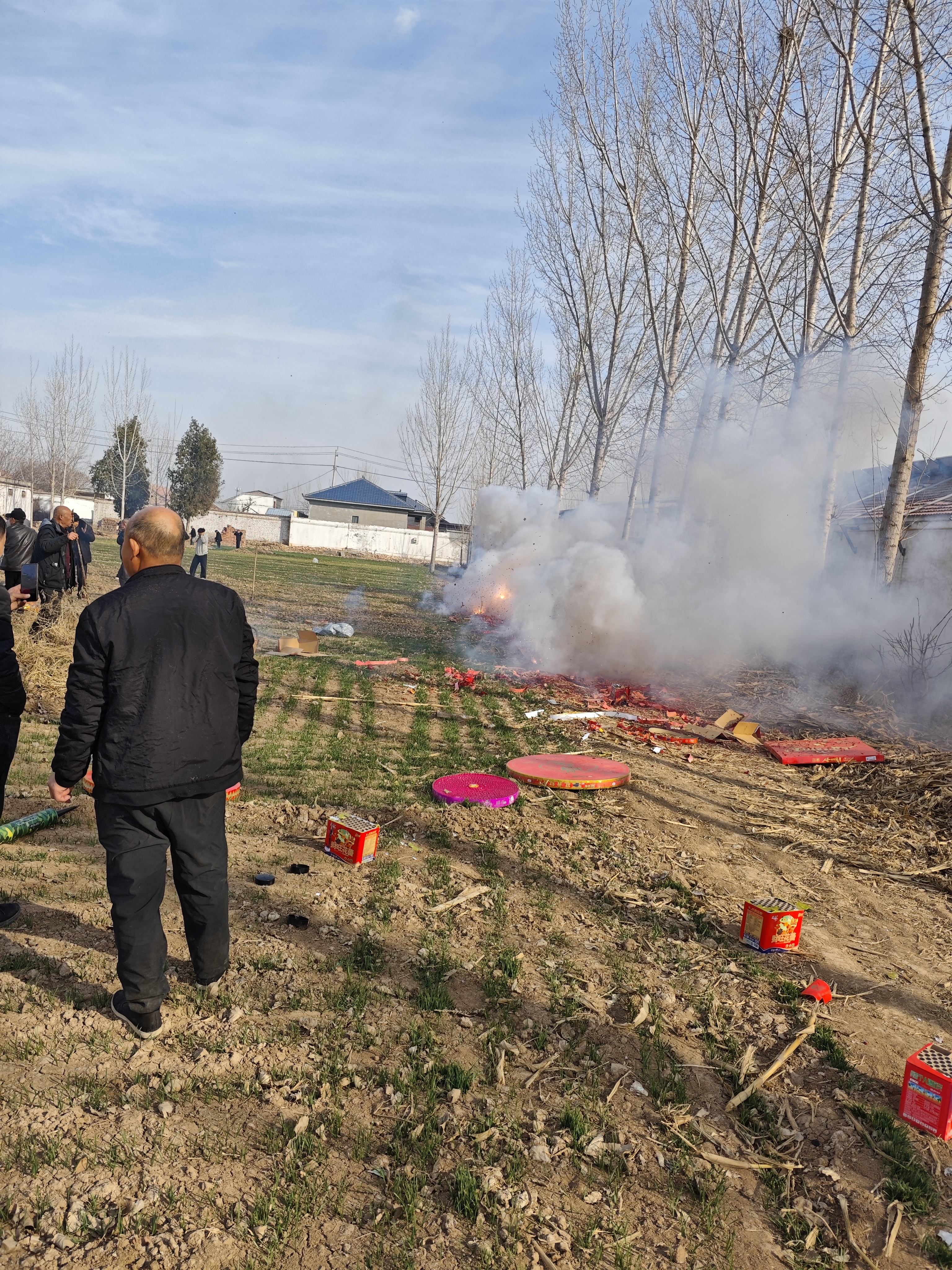 跪下的时候,膝盖触着地,凉意往上钻。磕头,点纸,放一挂鞭。