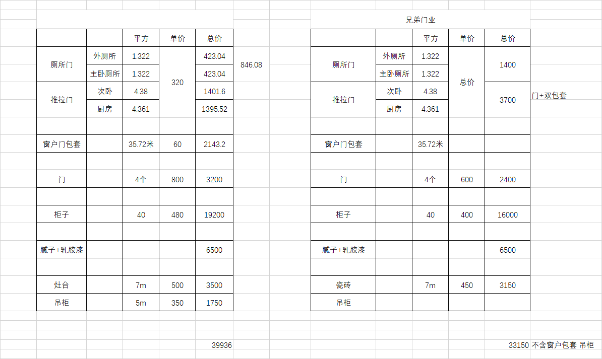 算下来自己都吓一跳。装修是真费钱,第二个大项刚完,马上第三个——全屋定制。目前找了两家,打算把腻子、柜子、门都包给一个人,正在等整体报价。自己量了尺,单价谈好了,就等明细出来。