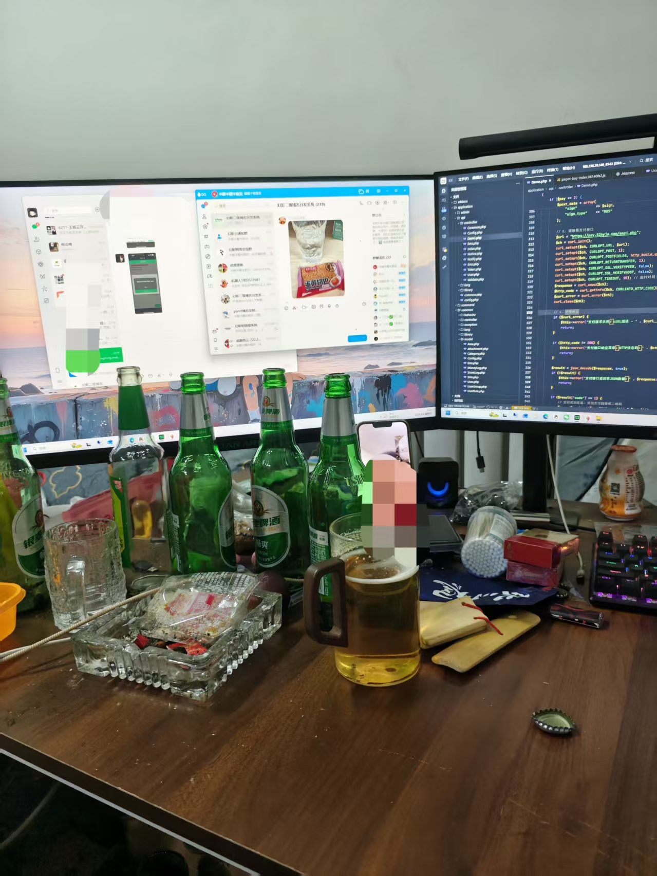 现在每天晚上和朋友视频喝酒。有时半斤白酒加六瓶啤酒,有时直接九瓶啤酒。天天喝到半夜,天天说明天不喝了,可一到晚上又忍不住整一点。