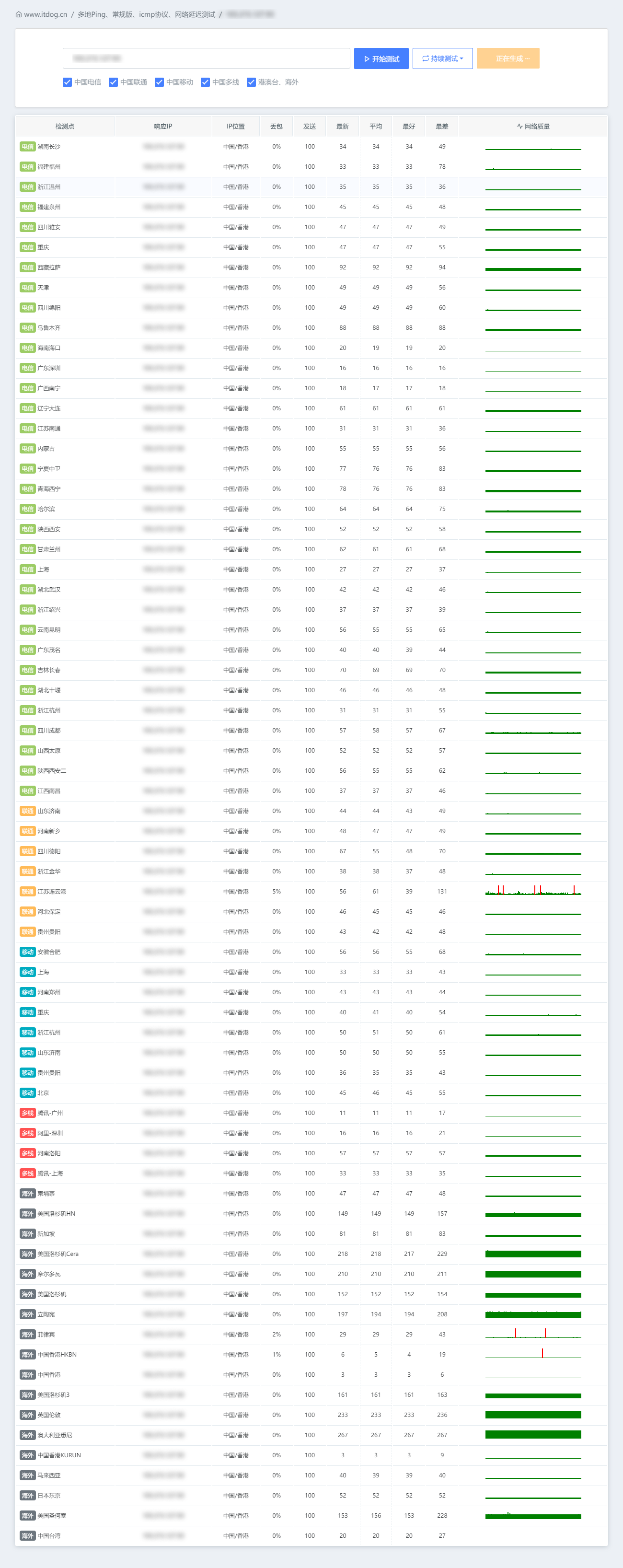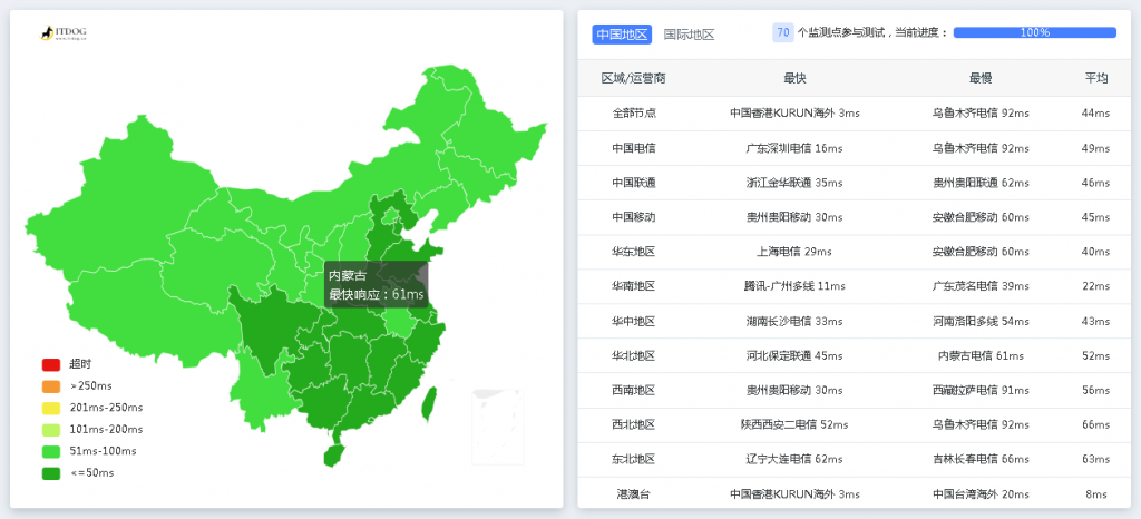 延迟 :延迟方面可以看到基本都在40MS以内,直连线路延迟低。