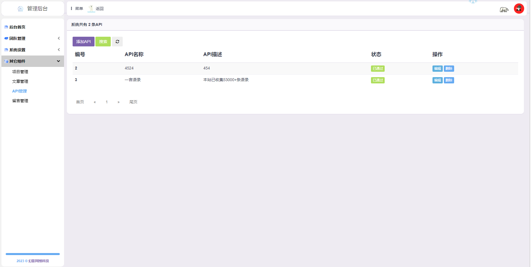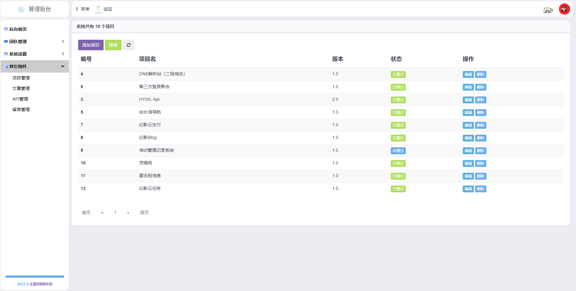 程序功能:项目管理,成员管理,动态管理,API接口管理,成员后台,在线工具等等------