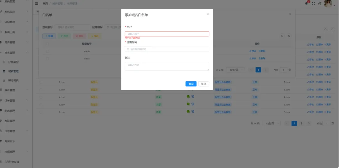 • 实名认证:可以设置用户是否强制实名后才可以解析域名,杜绝任何风险