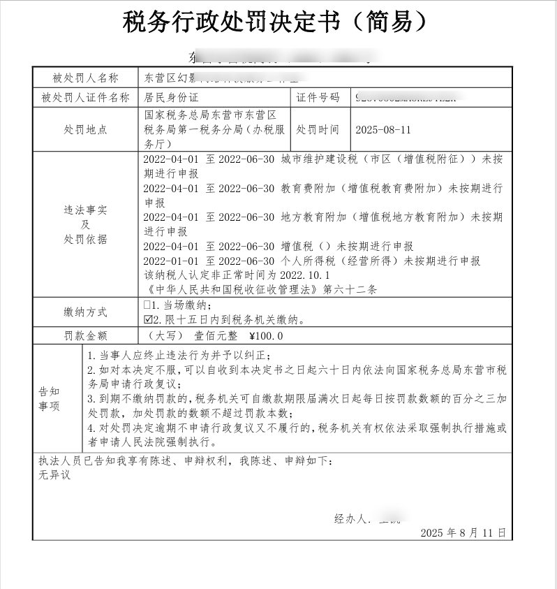 代账会计反馈称,该营业执照存在异常情况,需先行处理。经联系东营区税务局,被告知必须前往线下大厅办理。查询导航后得知,距离大约300公里,往返交通成本估算约600余元。综合考虑后,决定委托当地一家财务公司代为处理,支付费用700元。