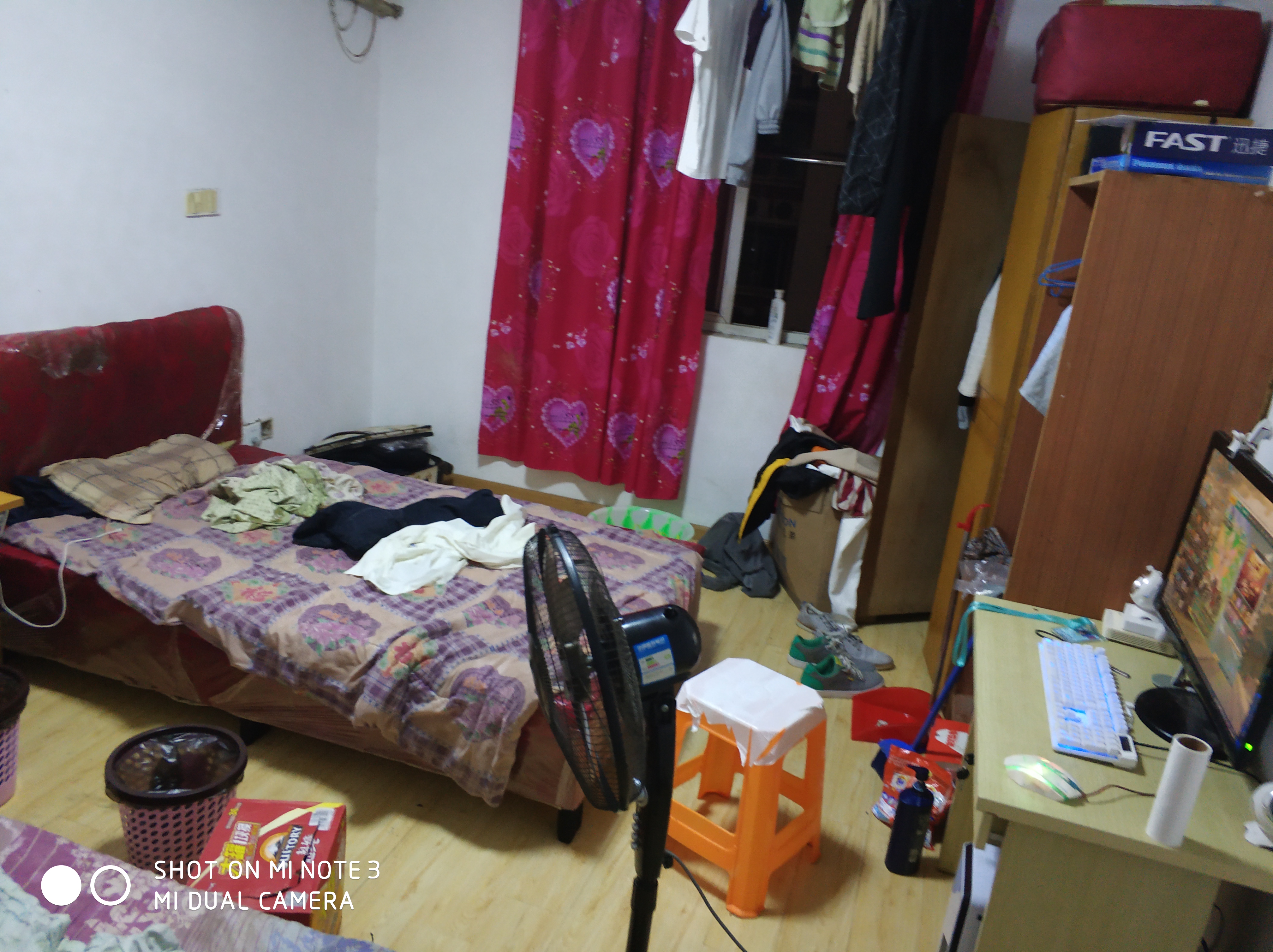 新房子朝北,一张床一张桌子,500一月。三个大老爷们挤一块儿,网线都拉不过去。