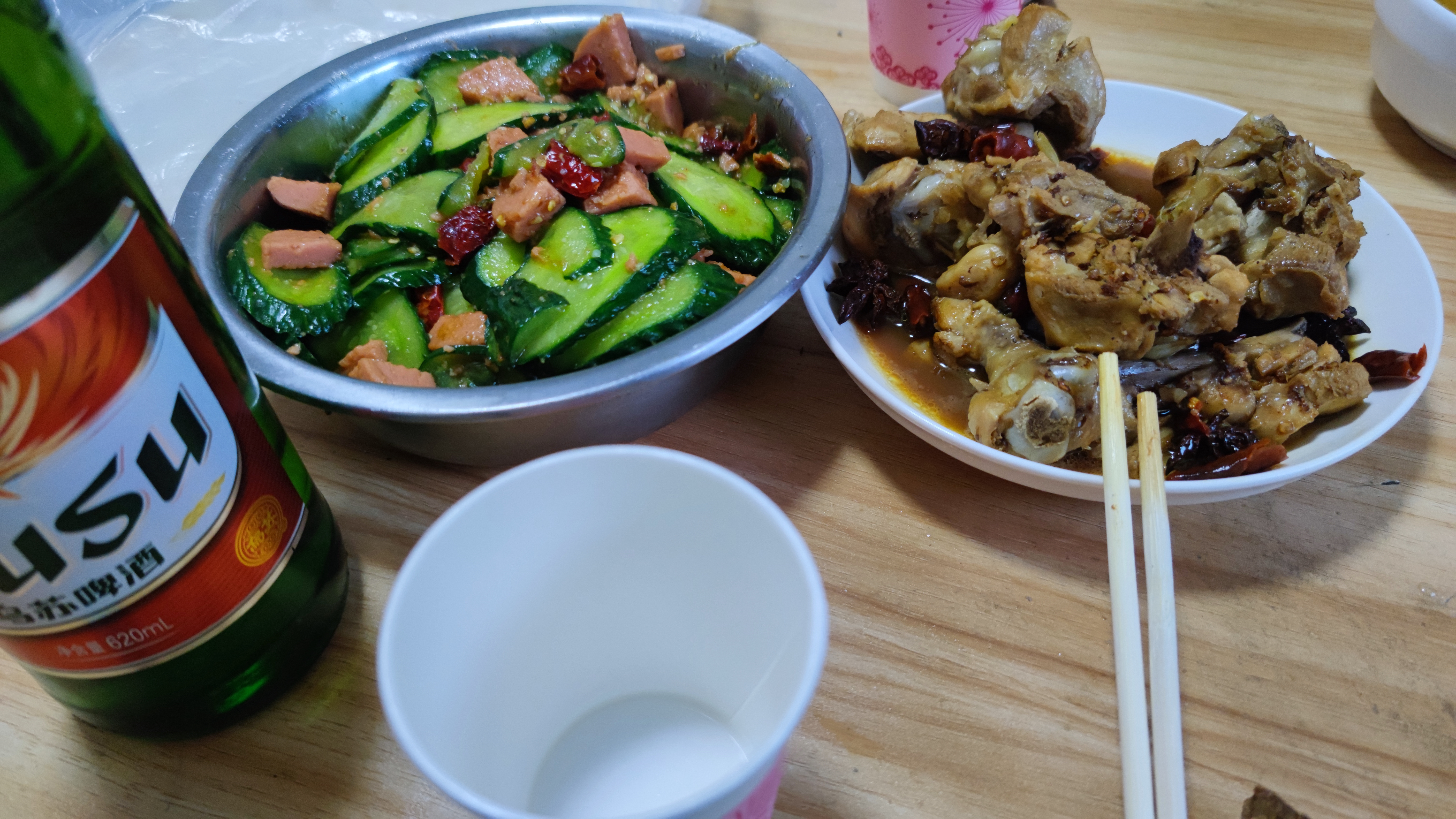 附近有个工地,去小卖部拎了几瓶啤酒。