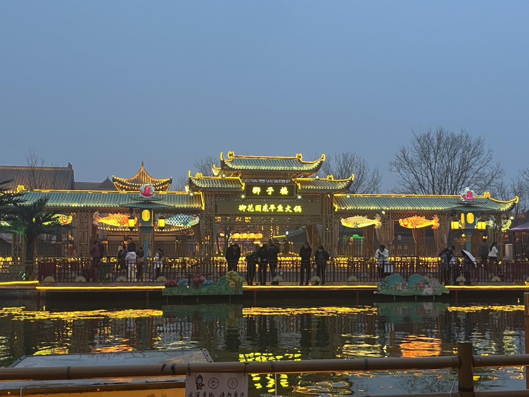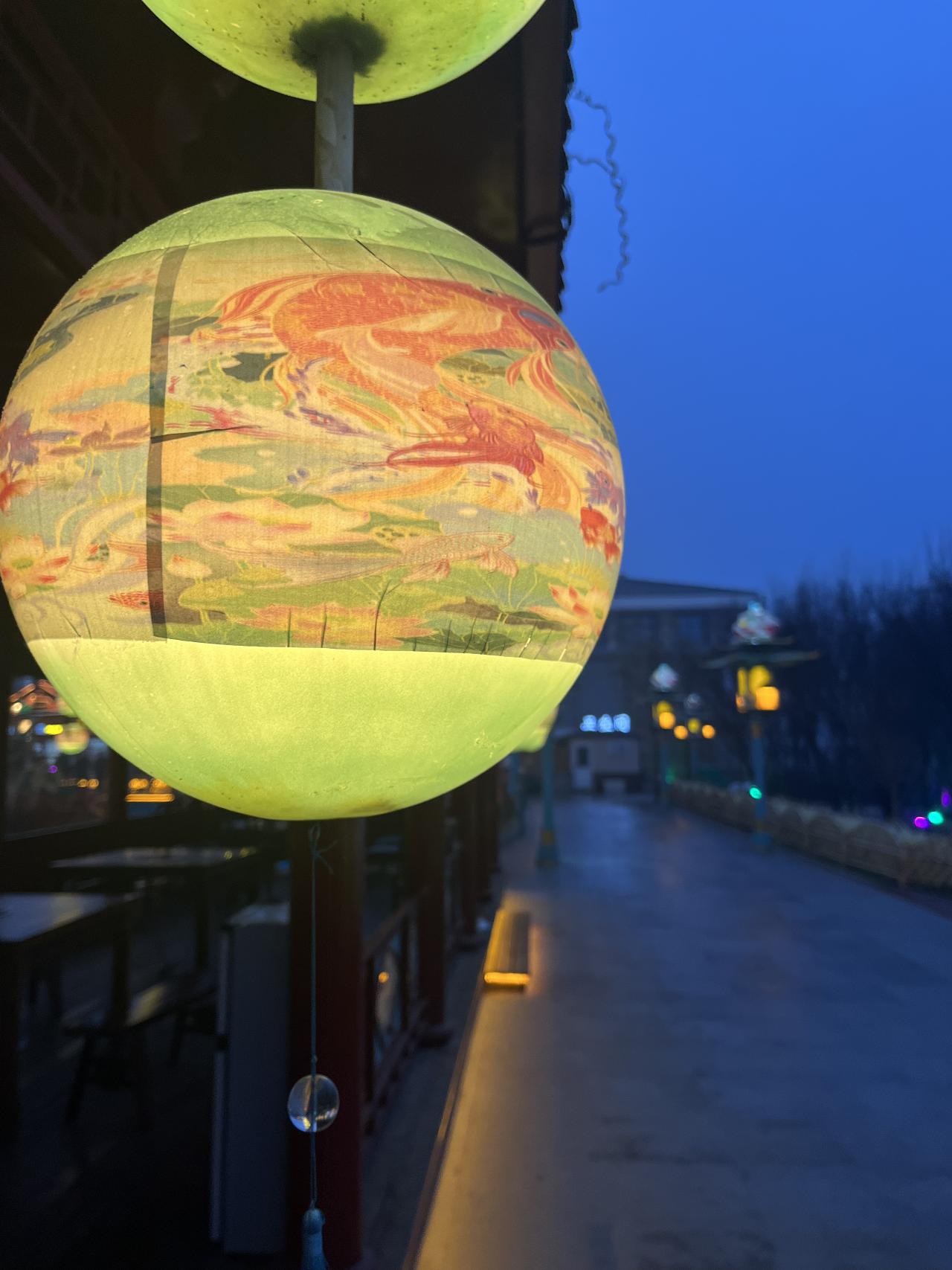 雨丝细得像喷雾,灯笼把整条街染成橘红色。穿汉服的姑娘提着裙角踩水坑,卖糖葫芦的大爷躲在屋檐下刷手机。