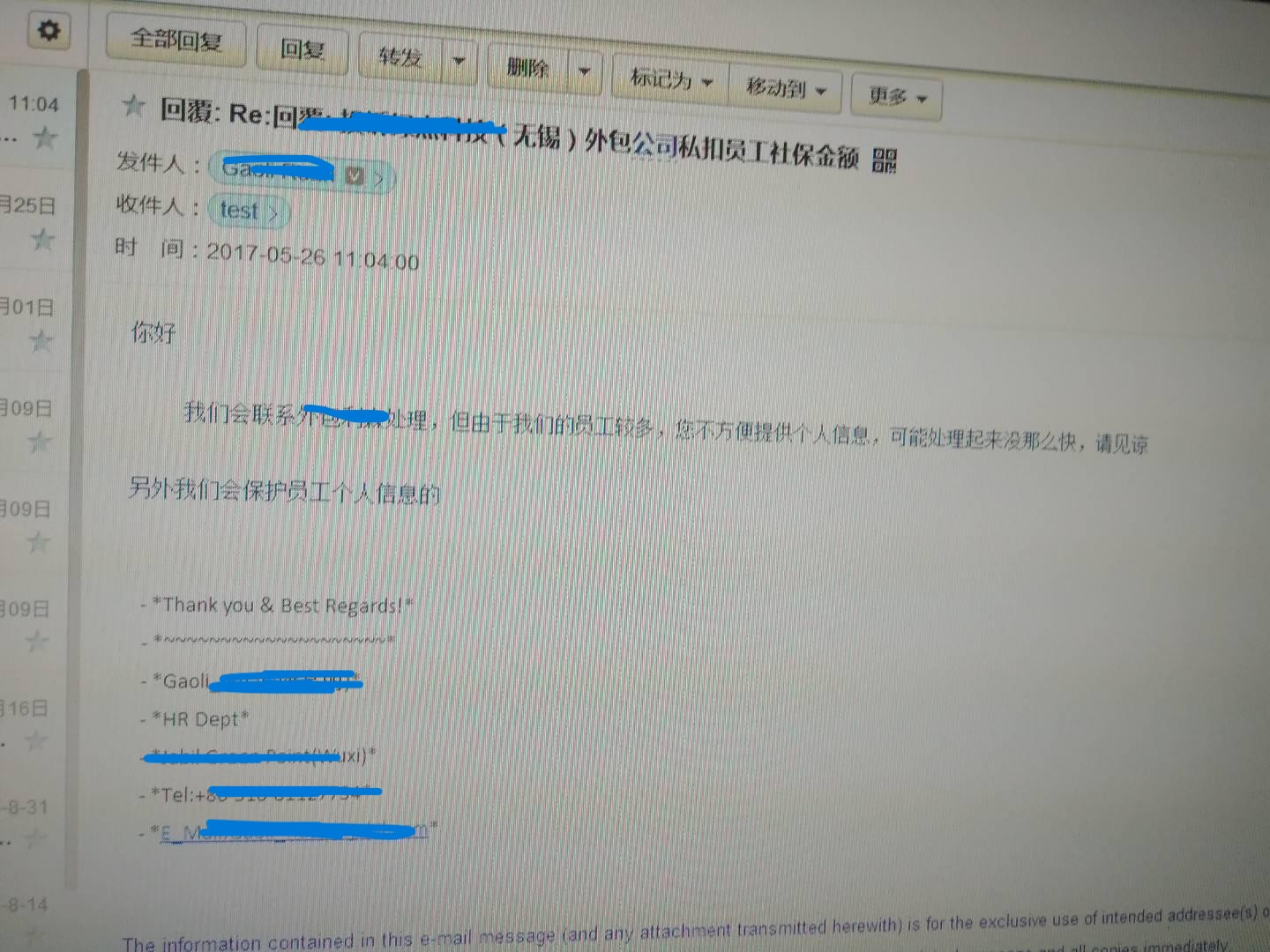 同年5月26日,为社保的事跟劳务公司杠上了。