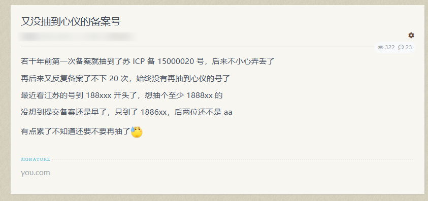 今天在逛大佬论坛的时候,看到一个帖子,竟然对备案号情有独钟,一直重复取消备案 已获得自己喜欢的备案号评论区:还有这爱好!我是备案一次,永远都不想备案了,太...